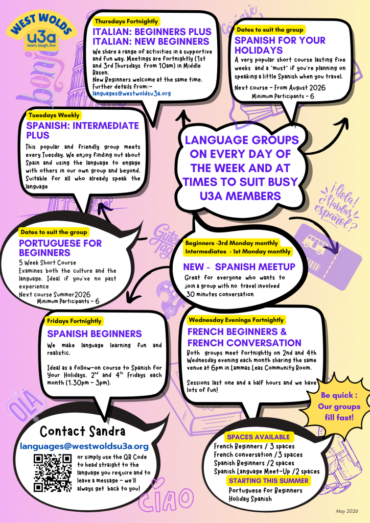 There’s a warm welcome from our Spanish groups for April with plenty of content for you to enjoy in English. If you want to tackle the Spanish articles why not join one of our wonderful Spanish groups here at West Wolds? There are plenty to choose from and we always welcome new members.
