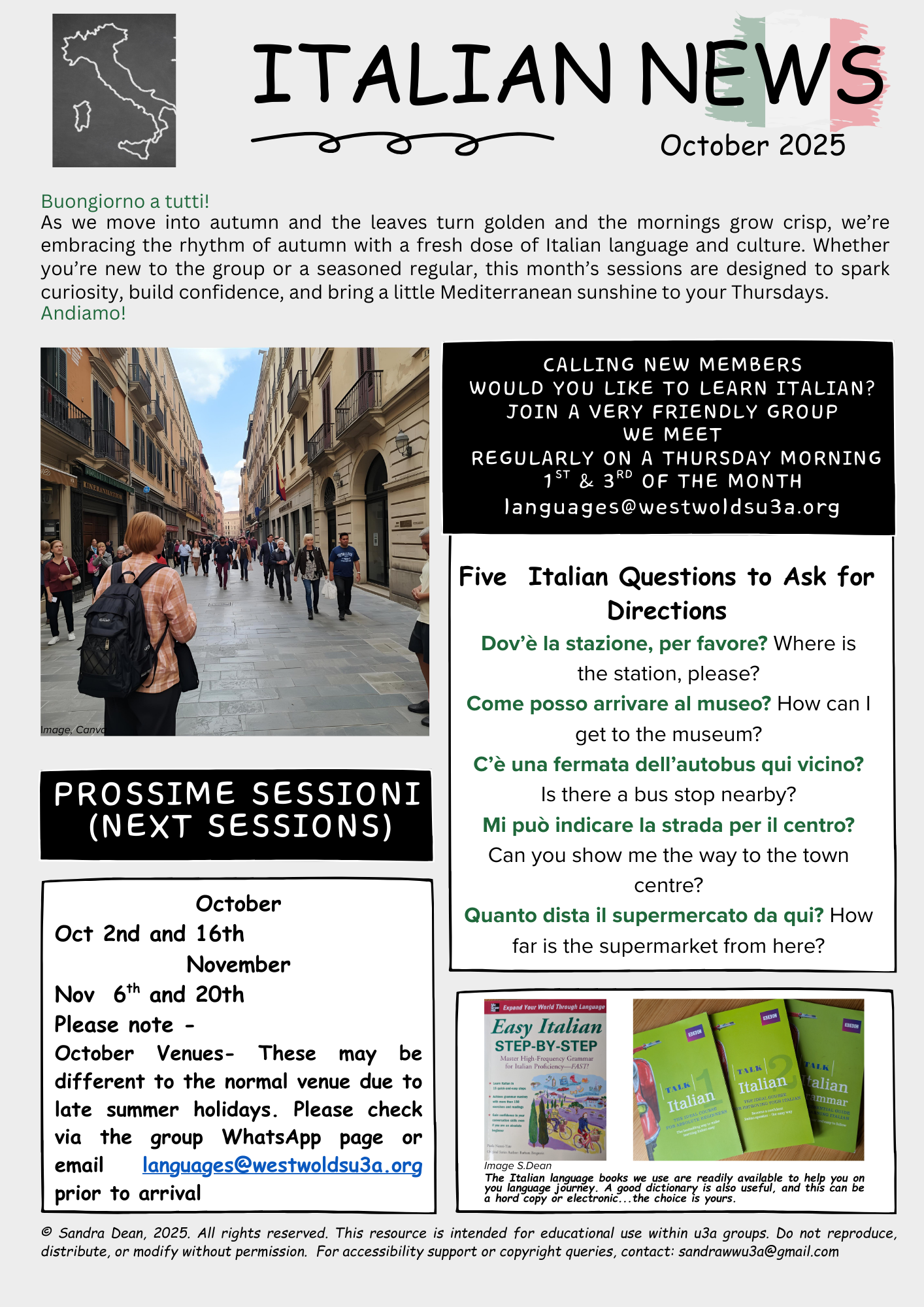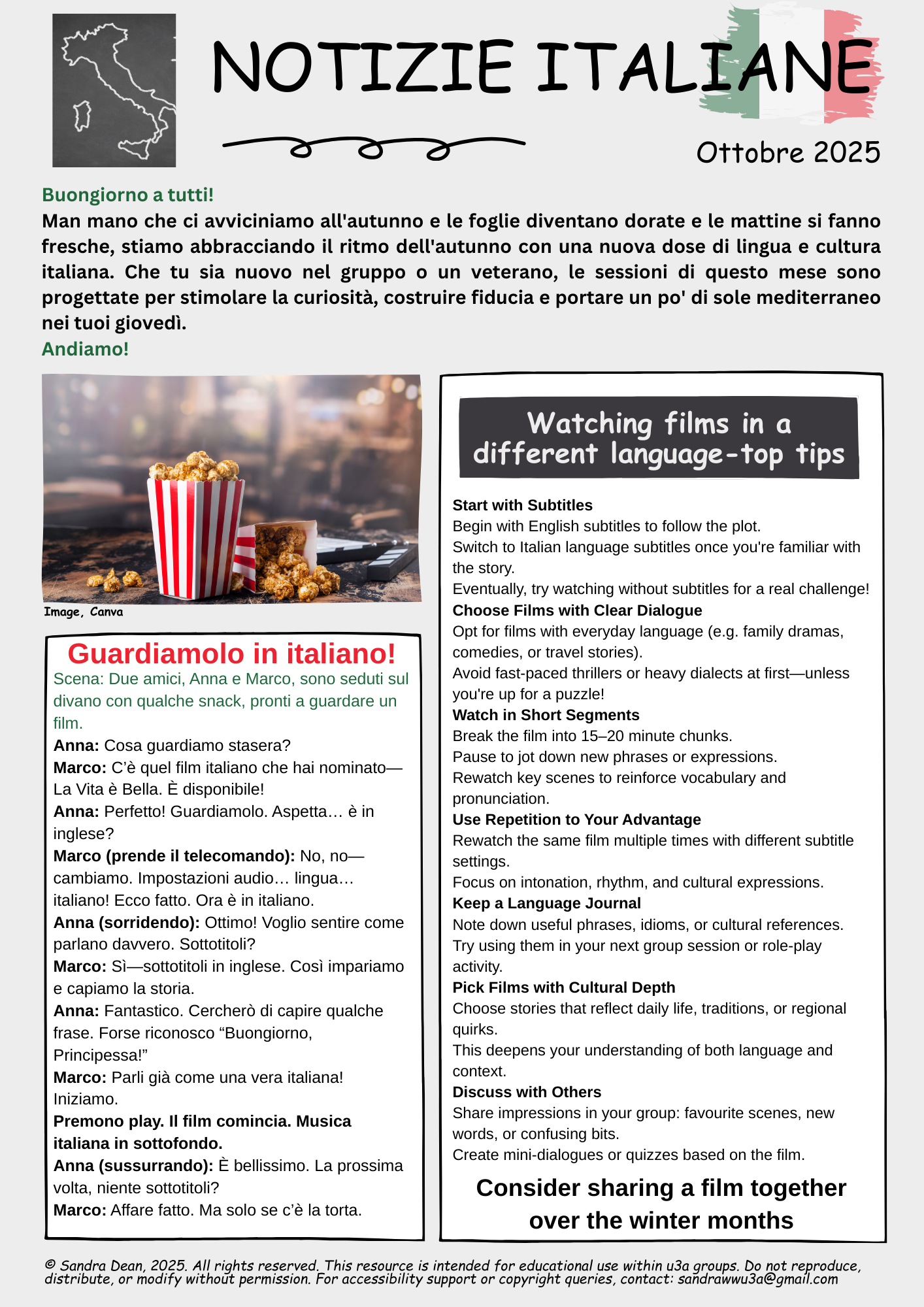Have you ever wondered how to try out a little Italian on your holidays, or even how to get the most from an Italian language film? Television is full of Italian cookery programmes, travel shows and drama series these days so why not take a look at this newsletter to find out more.